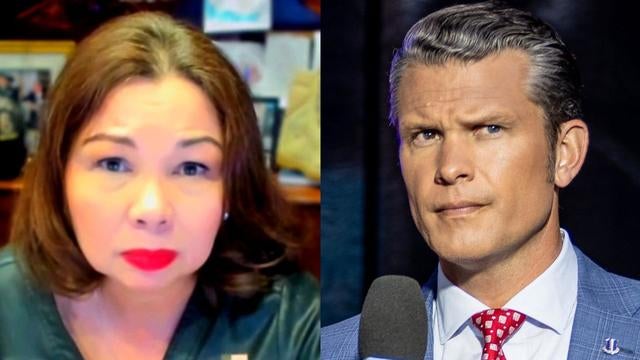 Democratic Senators criticized President-elect Donald Trump's pick for defense secretary, Pete Hegseth, during his confirmation hearing on Tuesday. Democratic Sen. Tammy Duckworth of Illinois, an Iraq War veteran and Purple Heart recipient, was one of the critics, telling Hegseth he is not qualified to be the defense secretary. She joins "The Daily Report" to discuss.